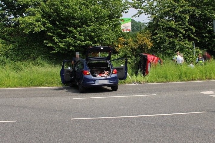 Am Montag (22.05.) kam es gegen 14:50 Uhr an der Einmündung Ziegwebersberg / Stockberg zu einem Verkehrsunfall zwischen zwei Pkw. Die Fahrzeugführer wurden hierbei leicht verletzt. Ein Pkw kippte nach dem Zusammenstoß auf die Seite.