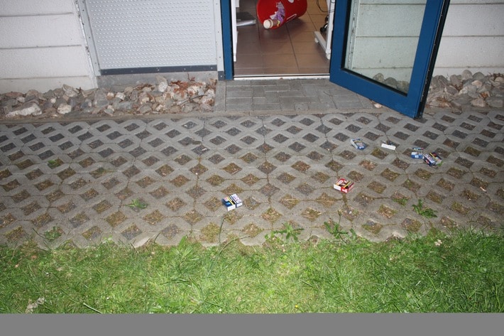 Der Angestellte einer Reinigungsfirma hatte zwei Männer beobachtet, die in die Raststätte eingebrochen waren und sich an den Zigarettenpackungen bedienten. Als er sich bemerkbar machte und die unbekannten Täter mit „Hallo, wer ist da?“ ansprach, flüchteten diese. Er folgte ihnen noch und sah, wie sie auf ihrem Fluchtweg in Richtung Parkplatzeinfahrt diverse Zigarettenpackungen fallen ließen. Dann verlor er sie aus den Augen. Er konnte lediglich erkennen, dass beide Männer kurze Hosen trugen.