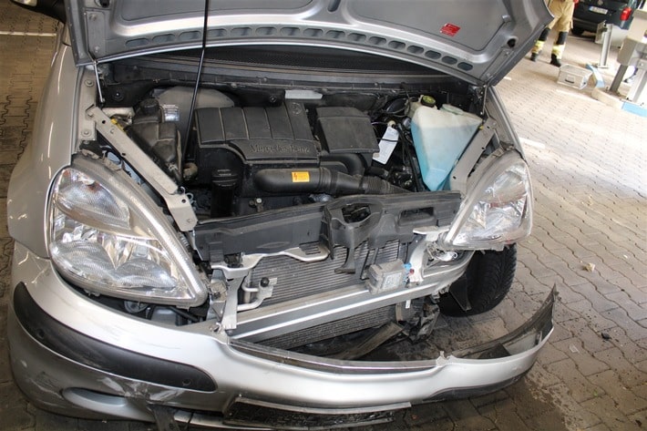 Dabei kollidierte sie mit einer Schutzplanke, der Parkhausschranke, rammte mit großer Wucht einen geparkten Pkw der Marke Ford und stieß letztlich frontal gegen eine Wand des Parkhauses. Dabei wurden auch eine Rohrleitung und ein Hydrantenkasten im Parkhaus beschädigt.