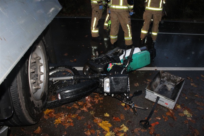 POL-RBK: Wermelskirchen – Zusammenstoß zwischen Leichtkraftrad und Unimog – Rettungshubschrauber im Einsatz