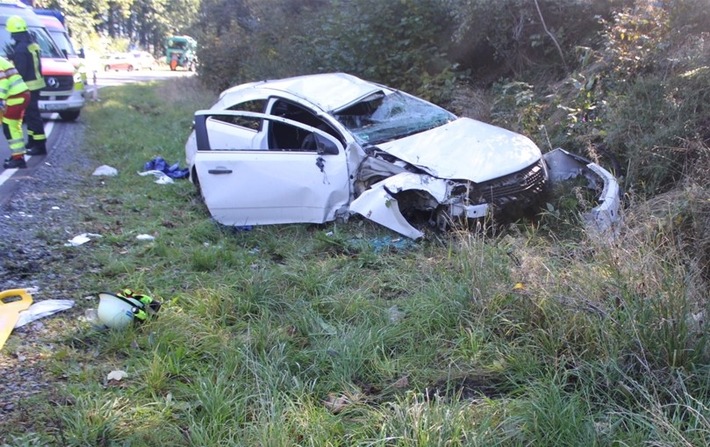 Am gestrigen Mittwochmittag (01. Oktober) ist es zu einem schweren Verkehrsunfall auf der Landstraße L 728 zwischen Brachthausen und Hilchenbach gekommen. Ein Opel Astra GTC überschlug sich mehrfach und alle drei Fahrzeuginsassen verletzten sich.