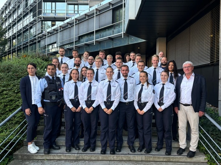 Am Montag (02. September) starteten 31 neue Polizistinnen und Polizisten mit ihrer Arbeit bei der Kreispolizeibehörde im Rhein-Sieg-Kreis.