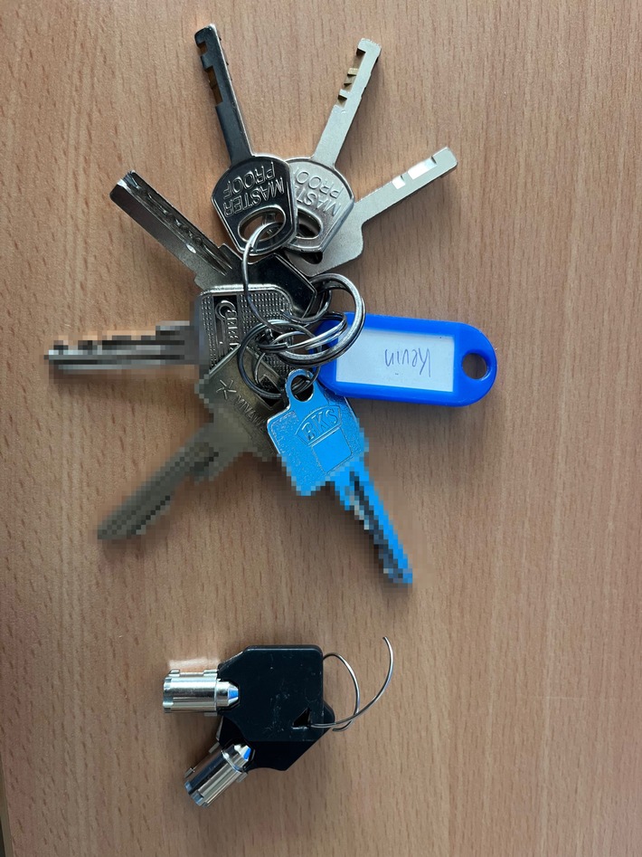 Bei den Gegenständen handelt es sich um ein Luftgewehr des Herstellers HAENEL mit einer Gravur der Ziffern 145322, drei einzelne Schlüssel und einen Schlüsselbund.