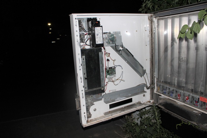 Der Zigarettenautomat wurde aufgebrochen und komplett geleert. Eine sofort eingeleitete Nahbereichsfahndung verlief negativ. Hinweise bitte an das Kriminalkommissariat 2 unter der Rufnummer 02162/377-0./hei (653)