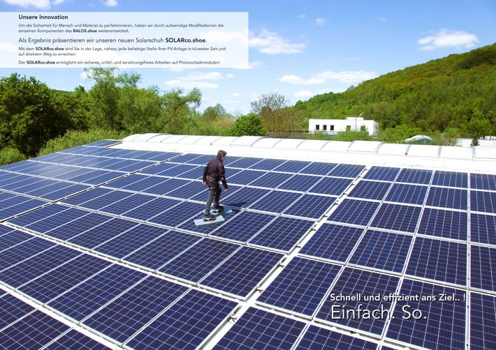 – Sicherheit und Schadensvermeidung: SOLARco.shoe revolutioniert die Art und Weise, wie an PV-Modulen gearbeitet wird. Vermeidet das Risiko von Beschädigungen und Unfällen, die bei herkömmlichen Arbeitsmethoden auftreten können.