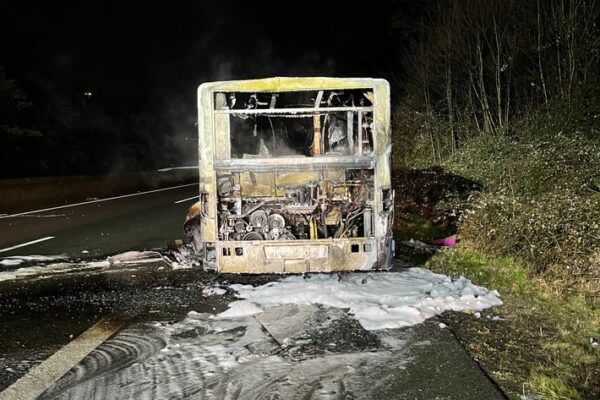 FW-E: Bus brennt auf der BAB 52 – Autobahn zeitweise voll gesperrt