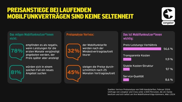 Umfrage bestätigt: günstige Startangebote und spätere Preisanstiege schrecken ab / Mobilfunkanbieter congstar verspricht: Dein Preis bleibt dein Preis